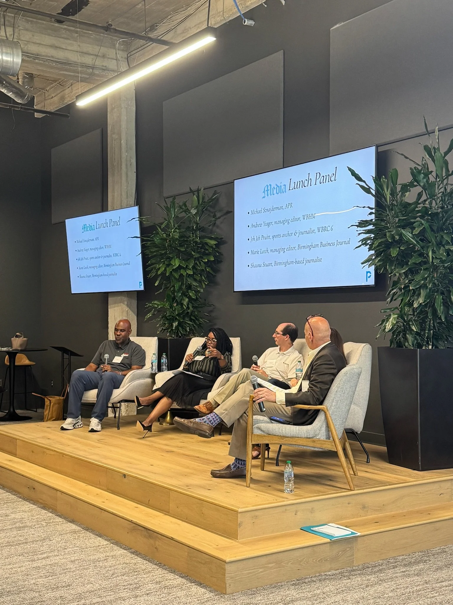 The lunch panel brought newsroom voices to the forefront. WBRC 6’s Jeh Jeh Pruitt, Birmingham Business Journal managing editor Marie Leech, former AL.com reporter Shauna Stuart and WBHM managing editor Andrew Yeager broke down how they evaluate pitches and what earns a second look. They pointed to strong visuals, a human touch and a straightforward explanation of why a story matters to their audience — what we at Peritus like to call the “what’s in it for me” (WIIFM) factor at the center of every pitch.