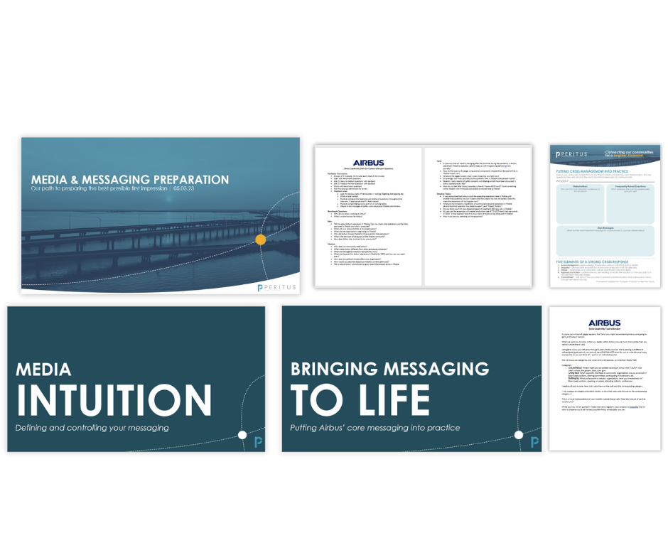 Peritus facilitated a highly tailored two-day workshop on media relations, messaging and crisis communications which included an overview of best practices, mock interviews with on-camera media training, and engaging tabletop crisis exercises specific to common industry scenarios.